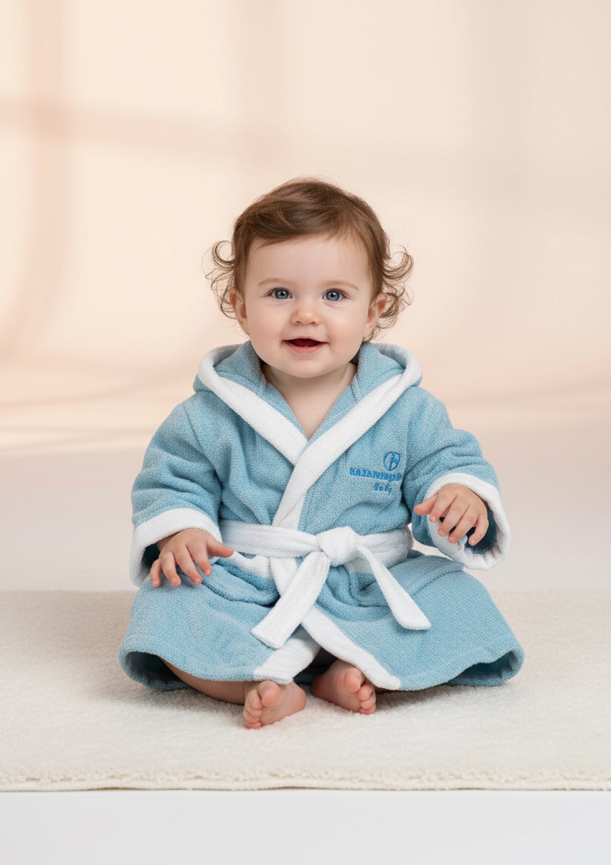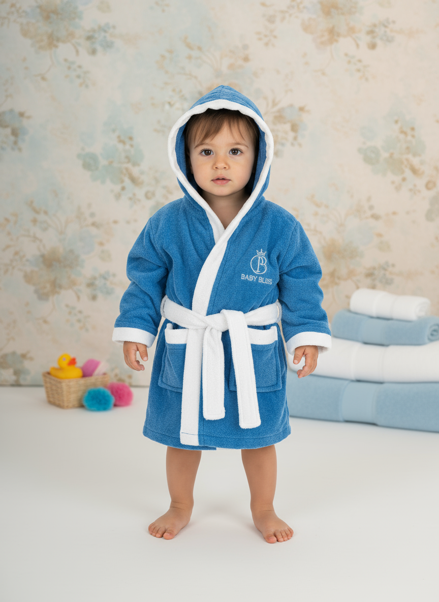 Descrizione: Accappatoio Baby con maniche, interno in morbida in spugna ed esterno in spugna cinigliata NAZARENO GABRIELLI. Art. NG-396