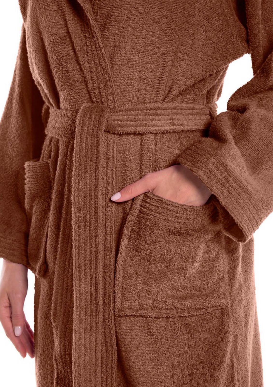 Dotato di cappuccio, cintura e tasche, con una vestibilità unisex pratica e confortevole.