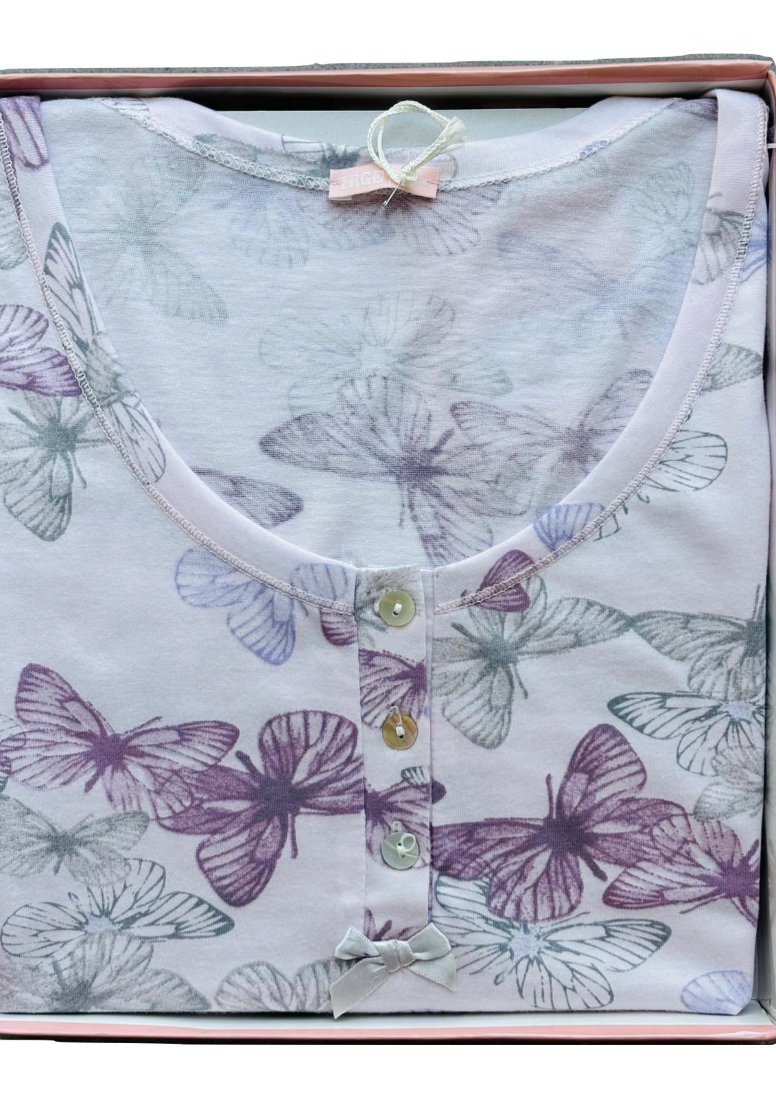 Descrizione: Camicia da notte donna spalla larga in jersey fantasia farfalle.