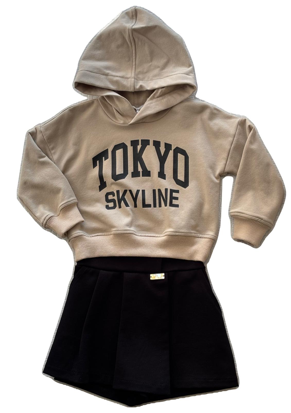• Felpa con cappuccio: colore beige, morbida al tatto, con cappuccio regolabile. Sul davanti spicca la scritta nera “Tokyo Skyline”, che dona un tocco trendy e cosmopolita. Polsini e fondo felpa a costine per una migliore vestibilità e comfort.