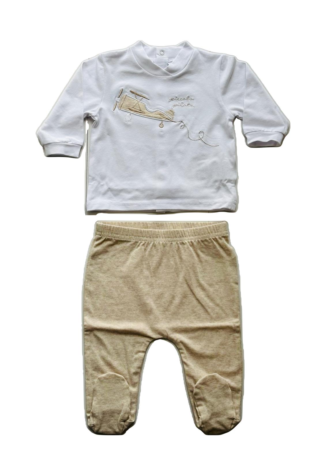 Descrizione: Completo Neonato Jersey ELLEPI, con ricamo aeroplano.