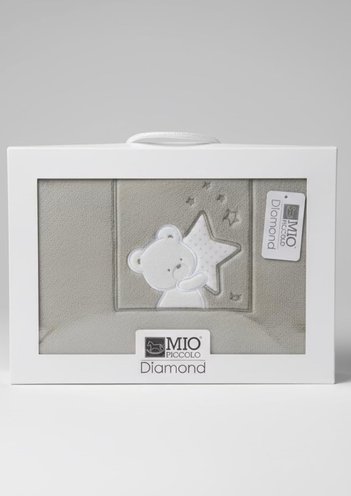 La copertina è proposta in una raffinata confezione regalo a valigetta, completa di manico in corda, perfetta come idea regalo per nascita, battesimo o baby shower.