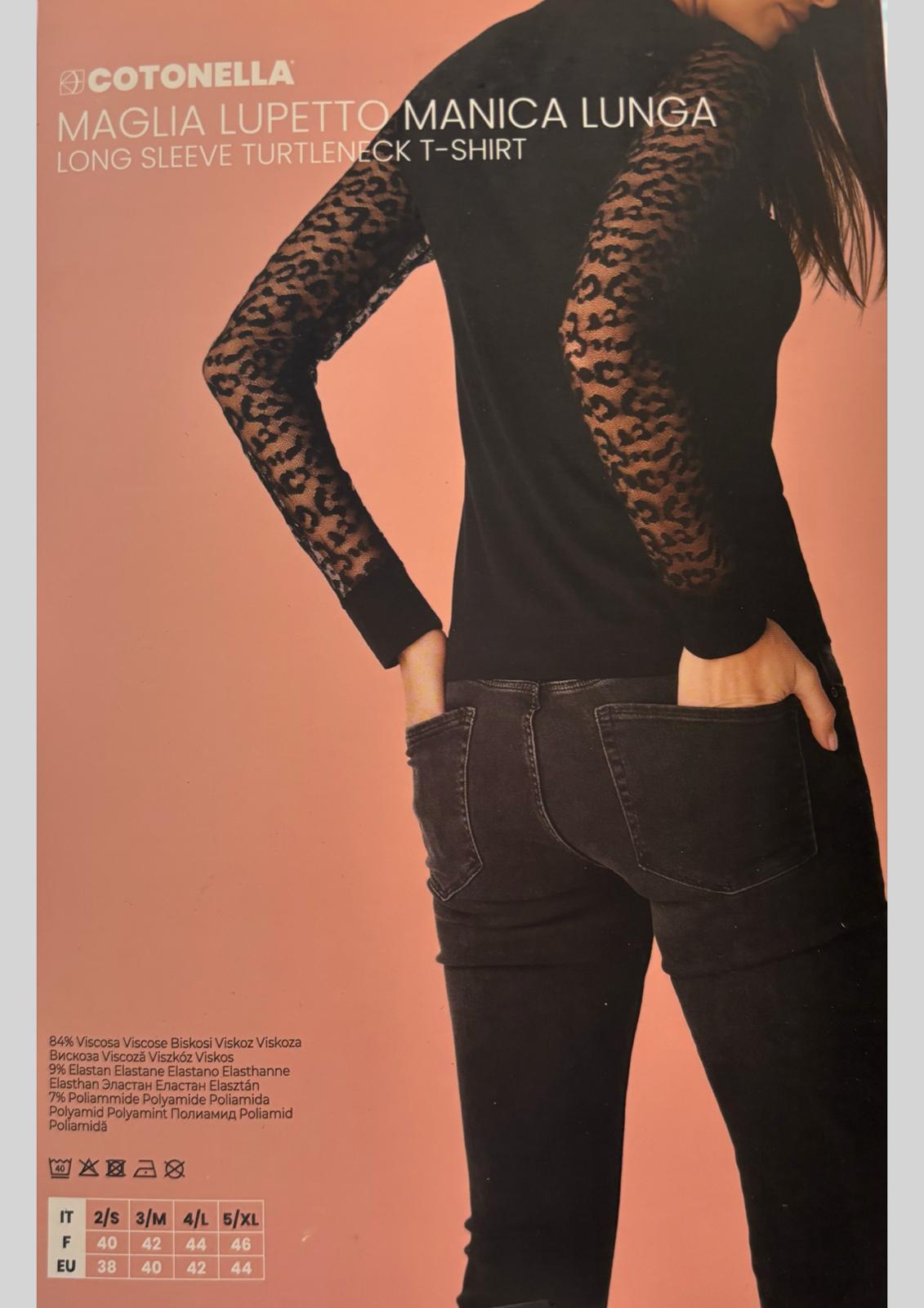 Descrizione: Lupetto Donna IN & OUT – COTONELLA, un capo elegante e audace per uno stile deciso, in viscosa elasticizzata che abbina il comfort del tessuto morbido alla sensualità delle maniche trasparenti con stampa animalier, per un look sofisticato e moderno.