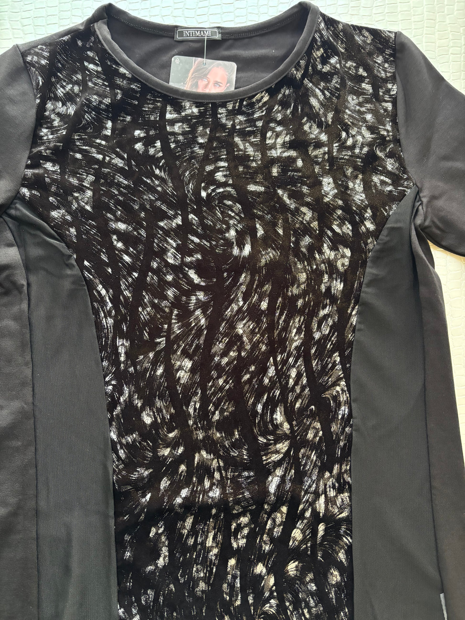 Maglia donna a manica lunga con inserti in tulle e ciniglia grigio - INTIMAMI