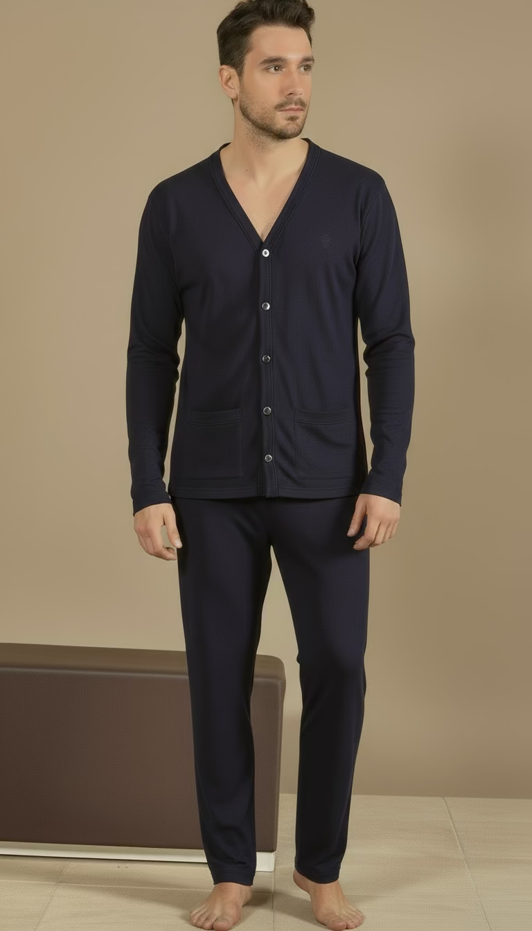 Il design pulito rende questo pigiama sobrio ed elegante, ideale per chi ama uno stile classico e discreto anche nei momenti di relax.