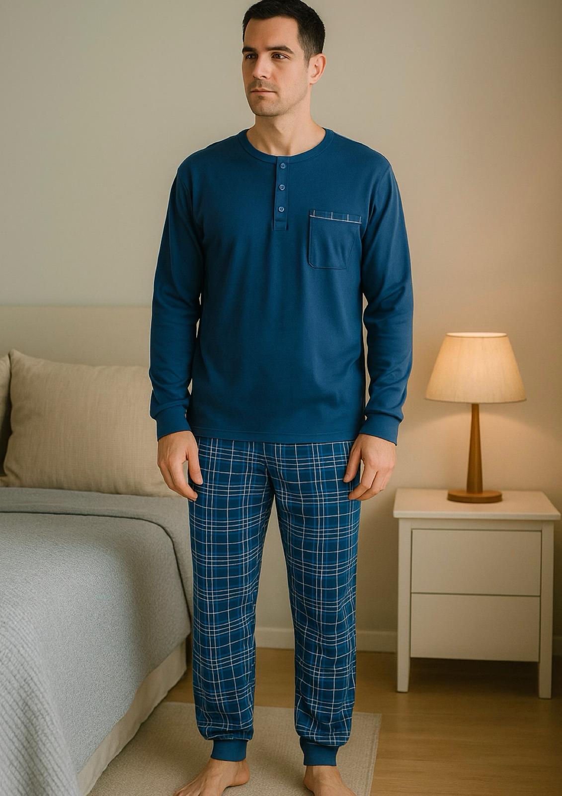 Pigiama uomo manica lunga con polsini fantasia scozzese