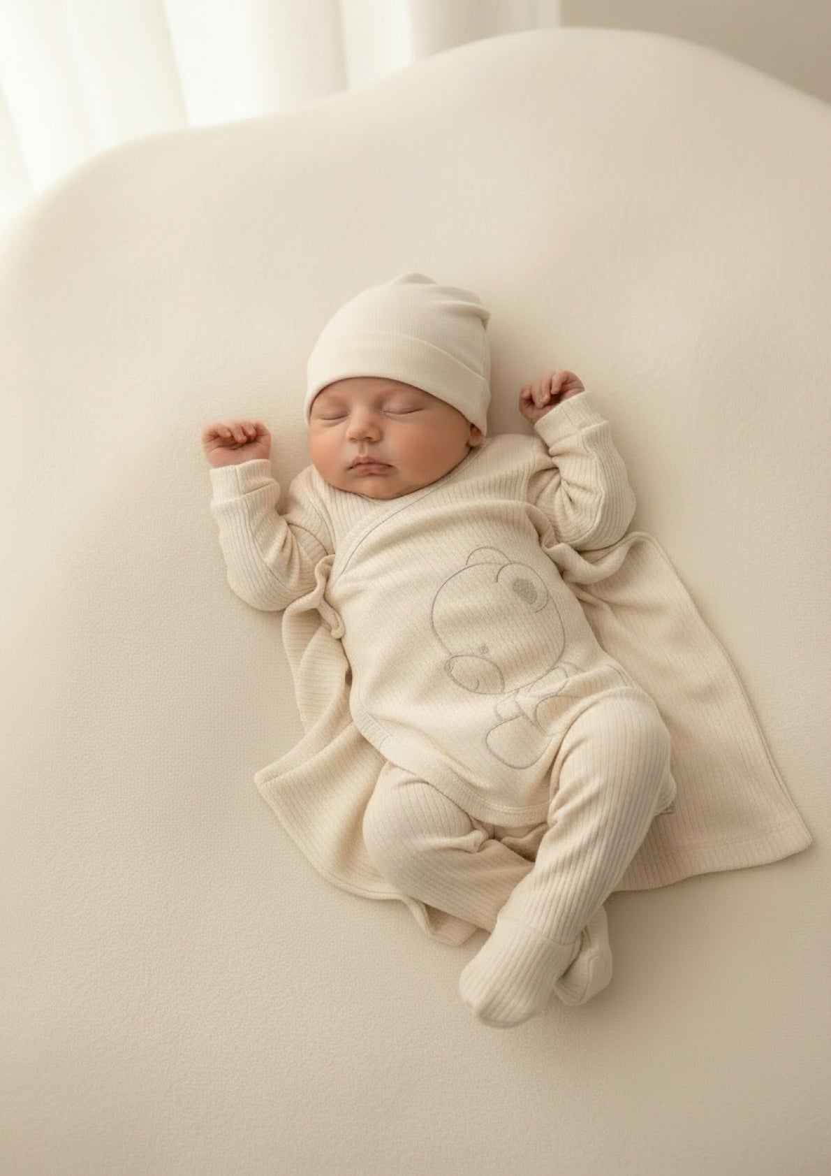 Set Nascita 3 Pezzi, copertina + Tutina + Cappellino, in Puro Cotone NAZARENO GABRIELLI