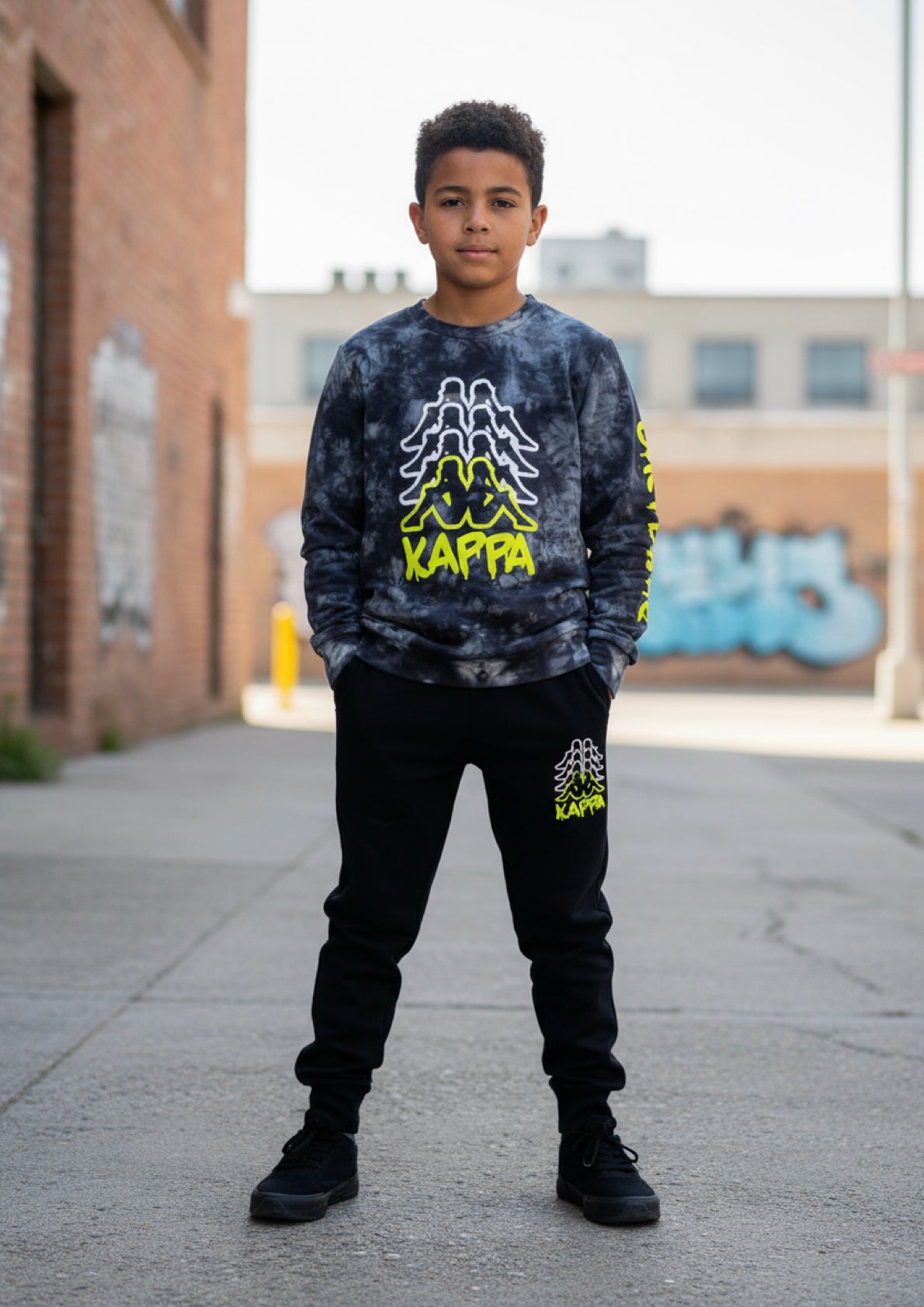 - Felpa nera girocollo con maxi logo Kappa sul davanti e particolari effetto “tie dye” che rendono il look unico e grintoso.