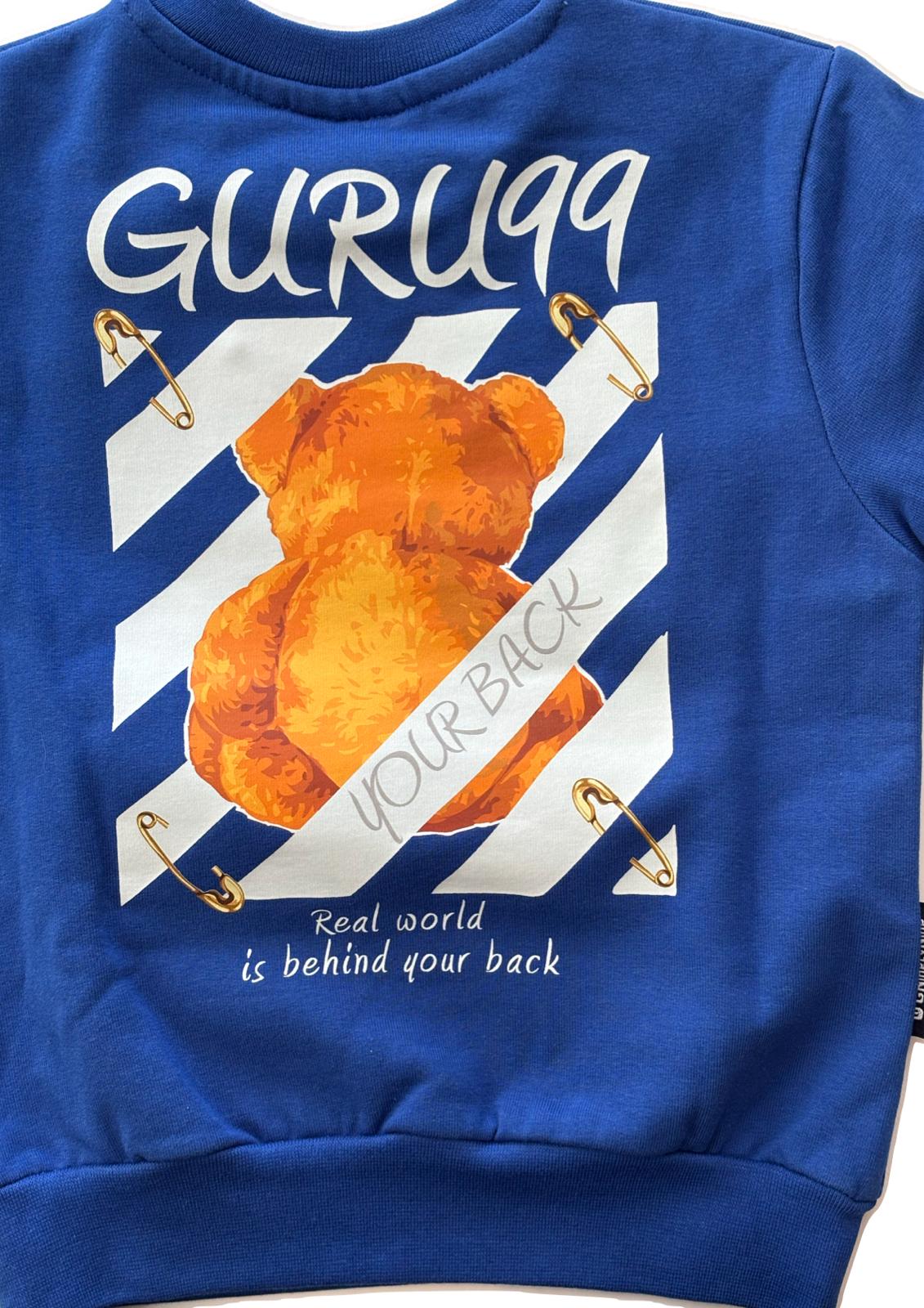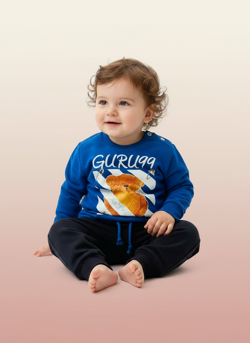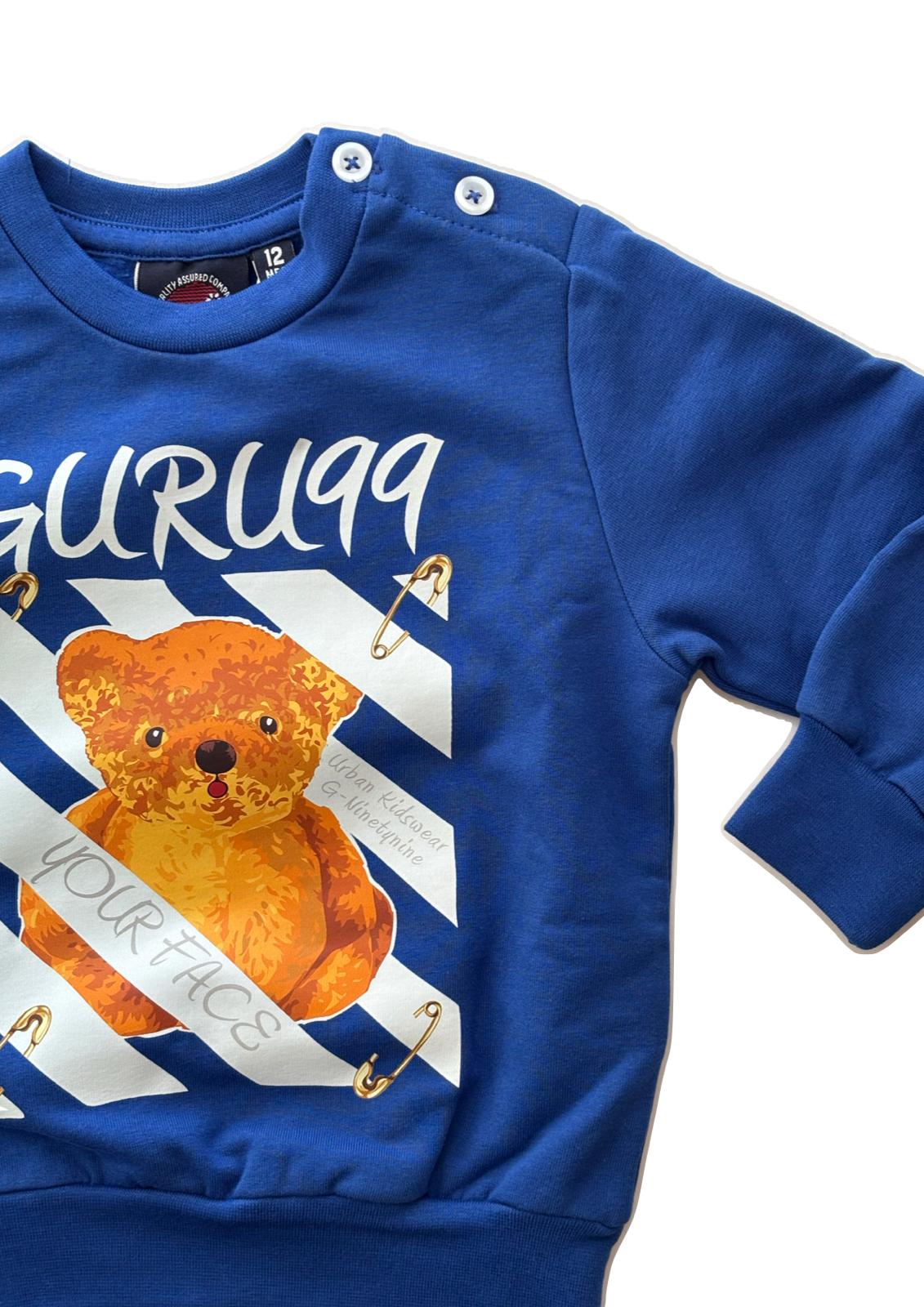 - Maglia blu royal a maniche lunghe con bottoncini sulla spalla, decorata con originale stampa orsetto sul davanti e retro dell’orsetto sul dietro, per un look allegro e divertente.